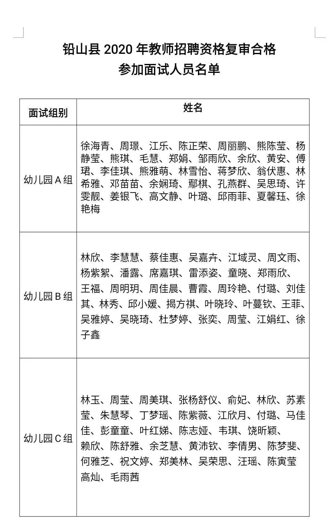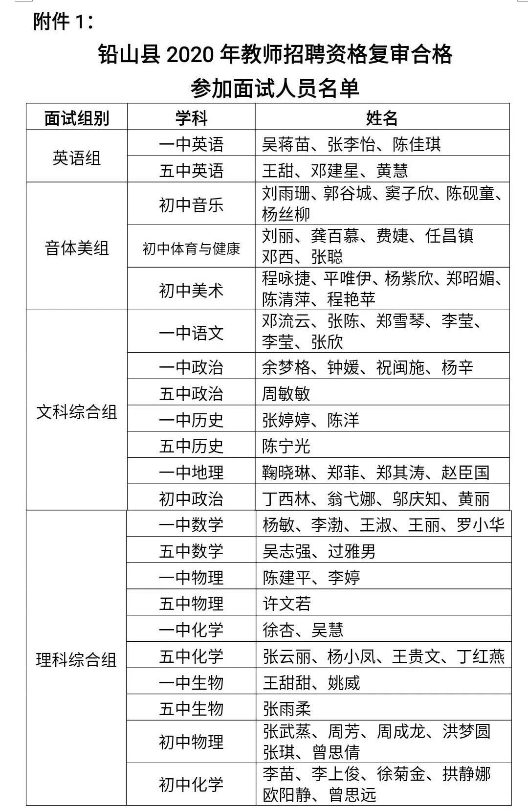 附件:1、铅山县2020年教师招聘资格复审合格参加面试人员名单